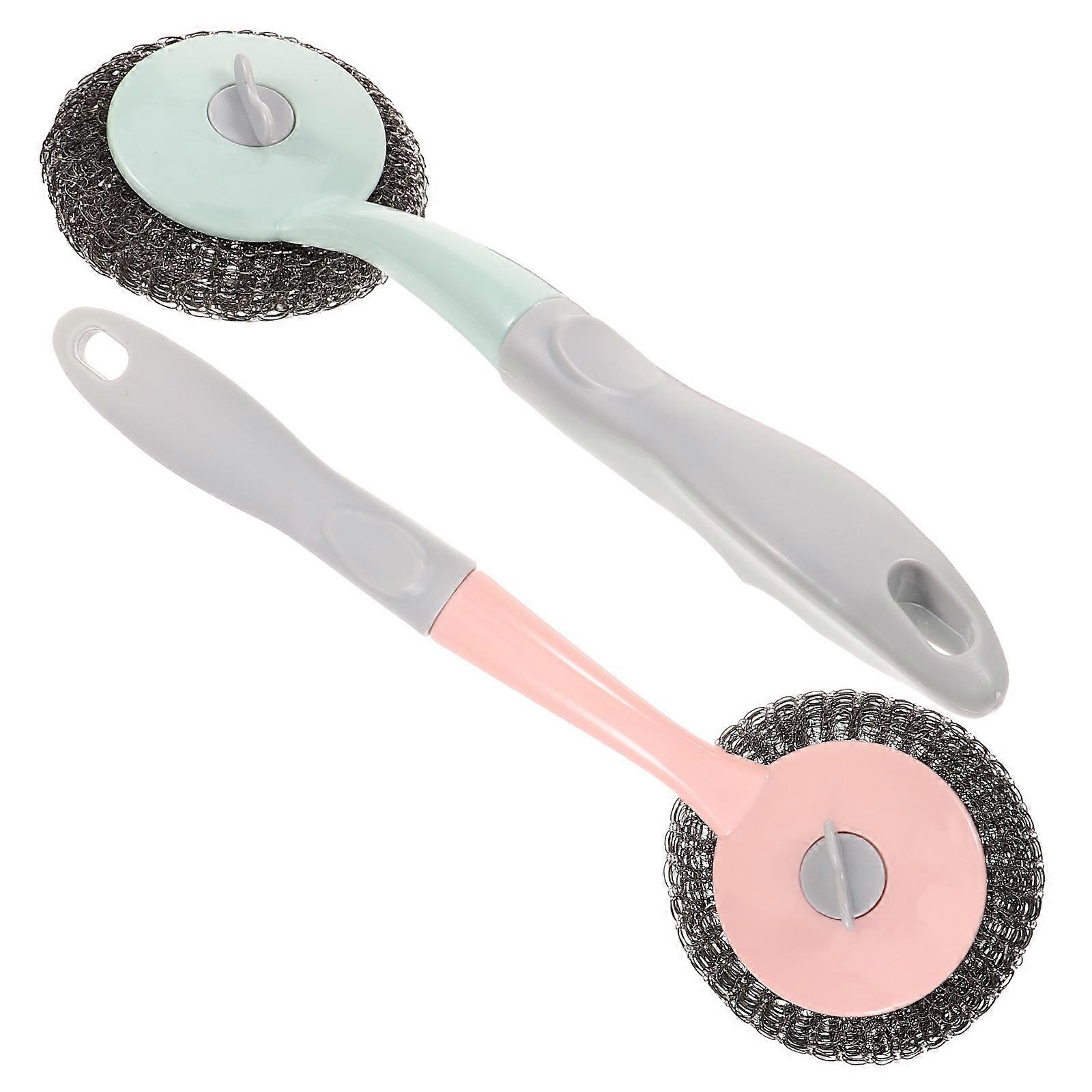 Kitchen Steel Wire Cleaning Brush for Pots Pans 2Pcs Long Handle Tool