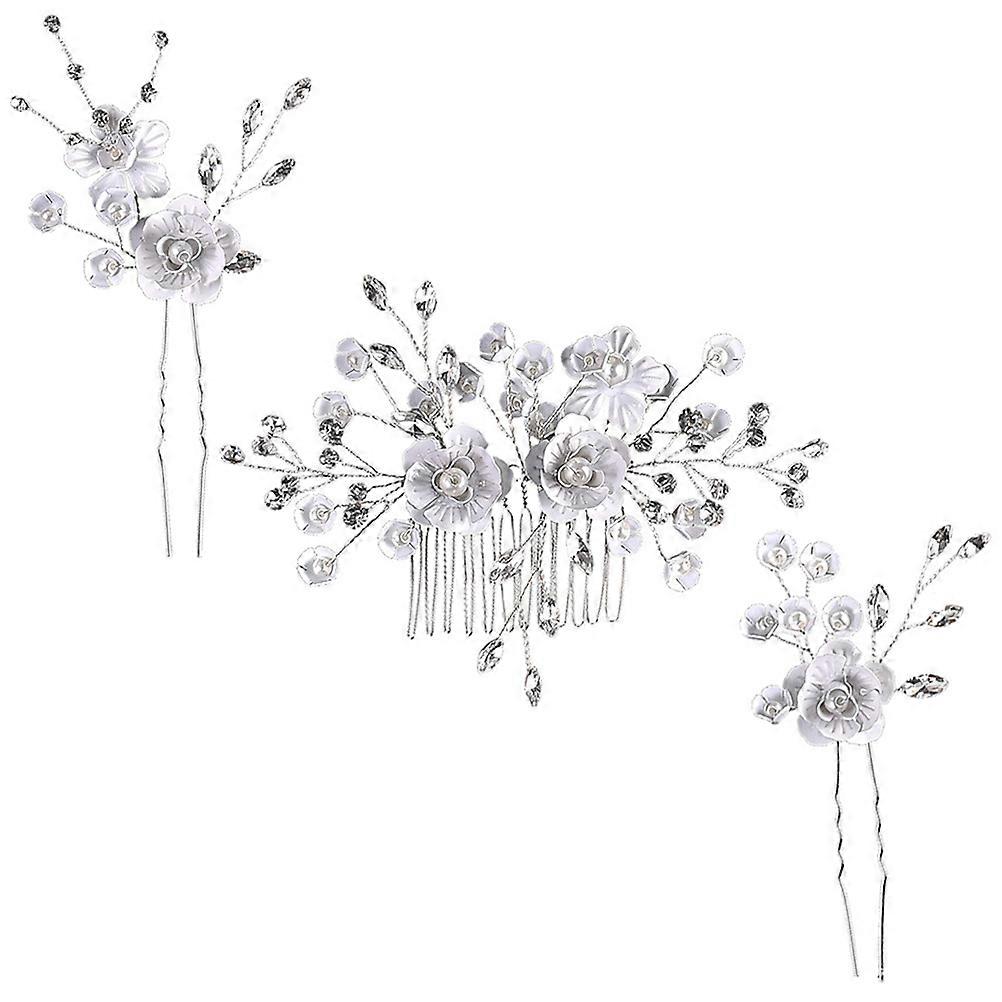Wedding Flower Hair Comb Bridal Hair Comb for Decoration 3Sets Silver