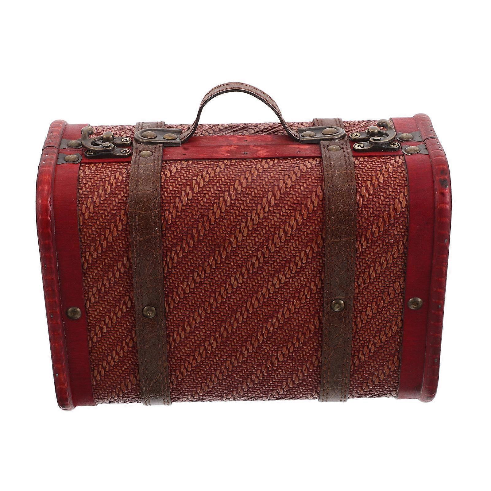 Wooden Vintage Suitcases Prop for Decoration with Handle 2Pcs Red Storage Box