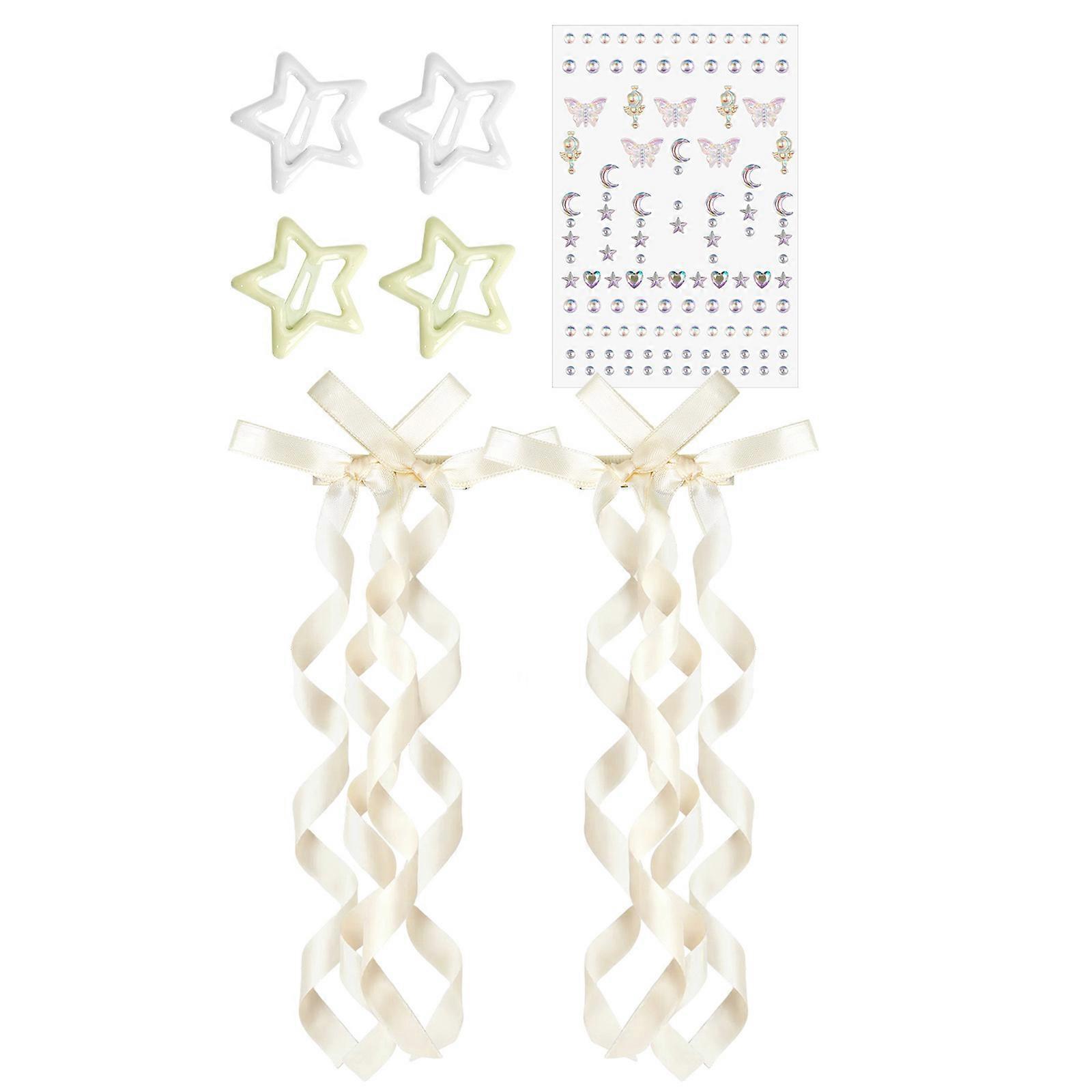 Bow with Flowing Ribbons Face Glitter Rhinestone Set for Women Music Festival