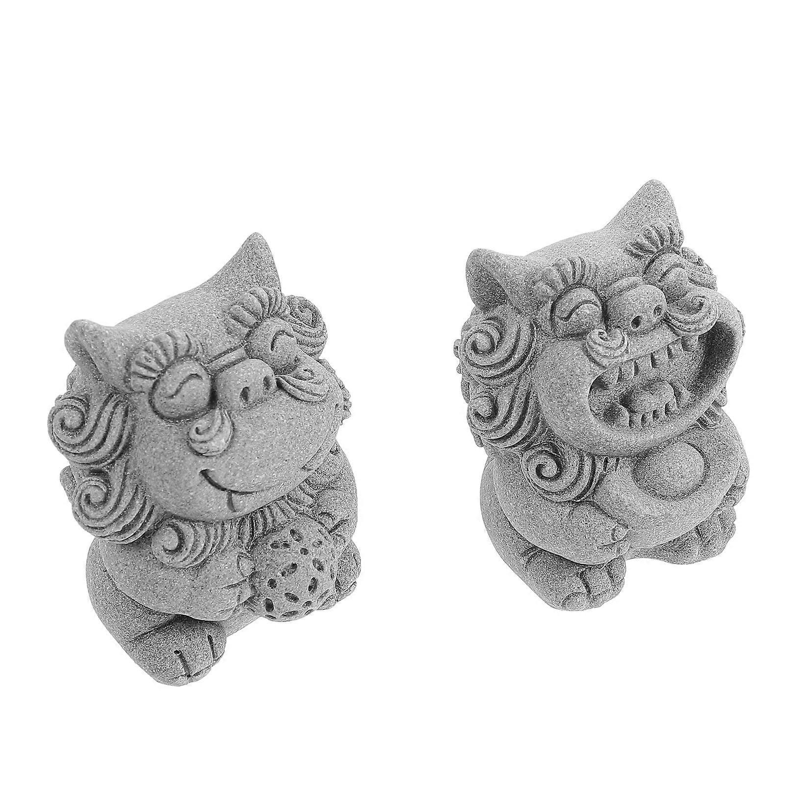 Small Lion Statue Sculpture for Office Decoration 2Pairs Dark Grey Ornament