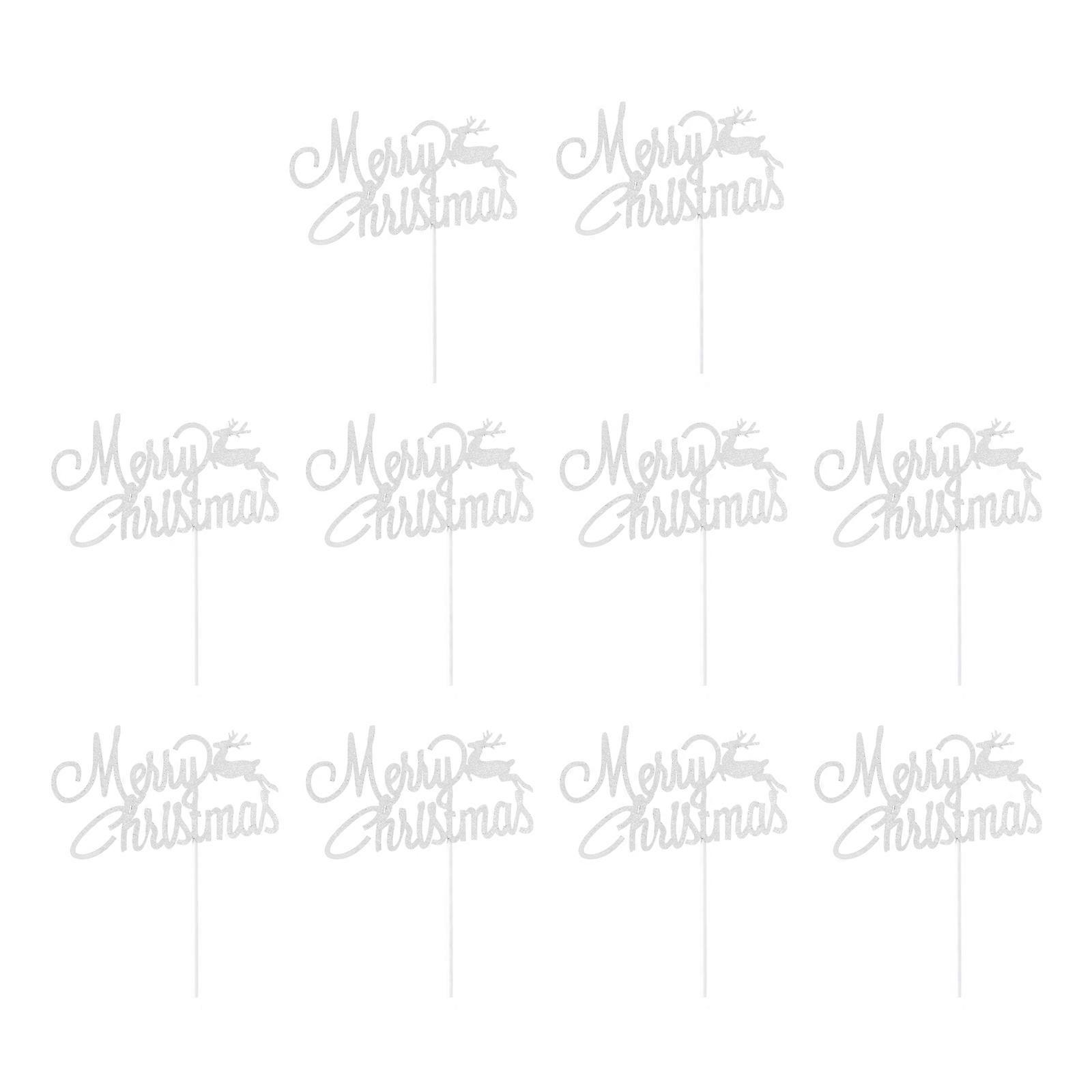 Christmas Cake Ornaments Silver Christmas Cupcake Toppers for 10Pcs