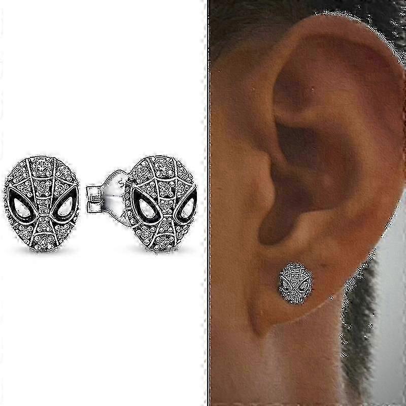 SpiderMan Mask Pave Stud Earrings 925 Sterling Silver Cool Style Statement Jewelry For Men And Women, Happy H