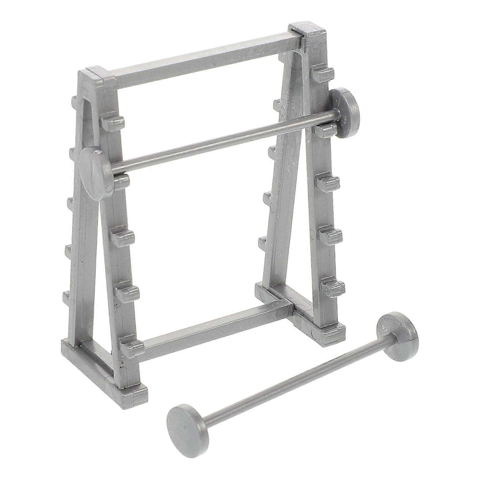 Miniature Fitness Equipment Model for Decor 5Pcs Plastic Barbell Rack Set Grey