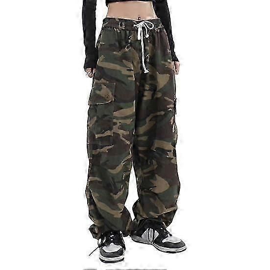 Women Cargo Elastic Waist Adjustable Drawstring Loose Fit Casual Trousers With Big Pockets Leisure