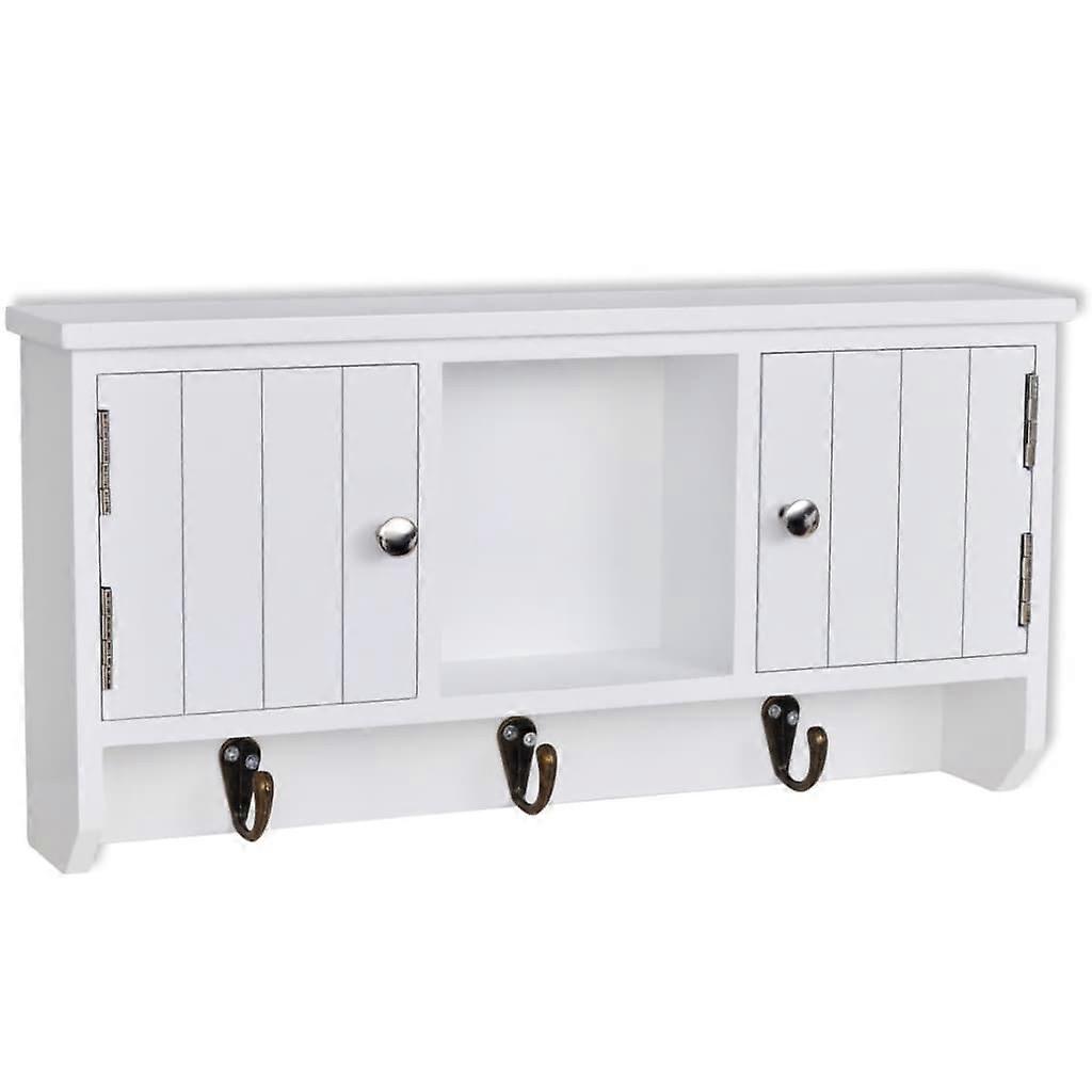 HOD HEALTH AND HOME Australia has been operating online and instore for 8 years. All products come with a 1 year warranty, fast shipping and special offers added to our site daily.. Features Wall-Mounted Cabinet Designed For Organising Keys And Jewellery Includes Three Metal Hooks For Hanging Keys Two Compartments With Doors And A Central Shelf For Additional Storage Constructed From Medium-Density Fibreboard And Steel For Durability Finished In White For A Clean Appearance Specifications Colour: White Material: Medium-Density Fibreboard And Steel Overall Dimensions: 40 Centimetres Length X 8.5 Centimetres Width X 20 Centimetres Height Door Dimensions: 10.5 Centimetres Width X 12 Centimetres Height Maximum Load Capacity (Total): 5 Kilograms You Will Receive Vidaxl Wall Cabinet For Keys And Jewellery With Doors And Hooks