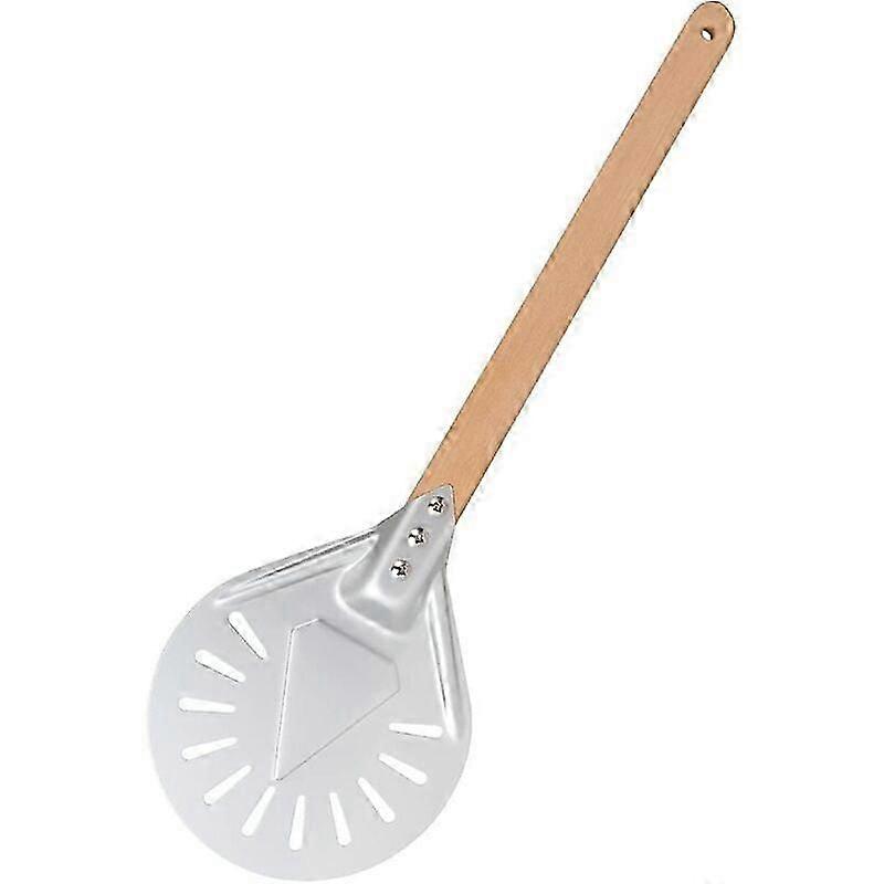 7 Inch Round Pizza Peel, Perforated Pizza Peel With Long Removable Wooden Handle, Made Of Aluminum And Longziming Non-slip Handle