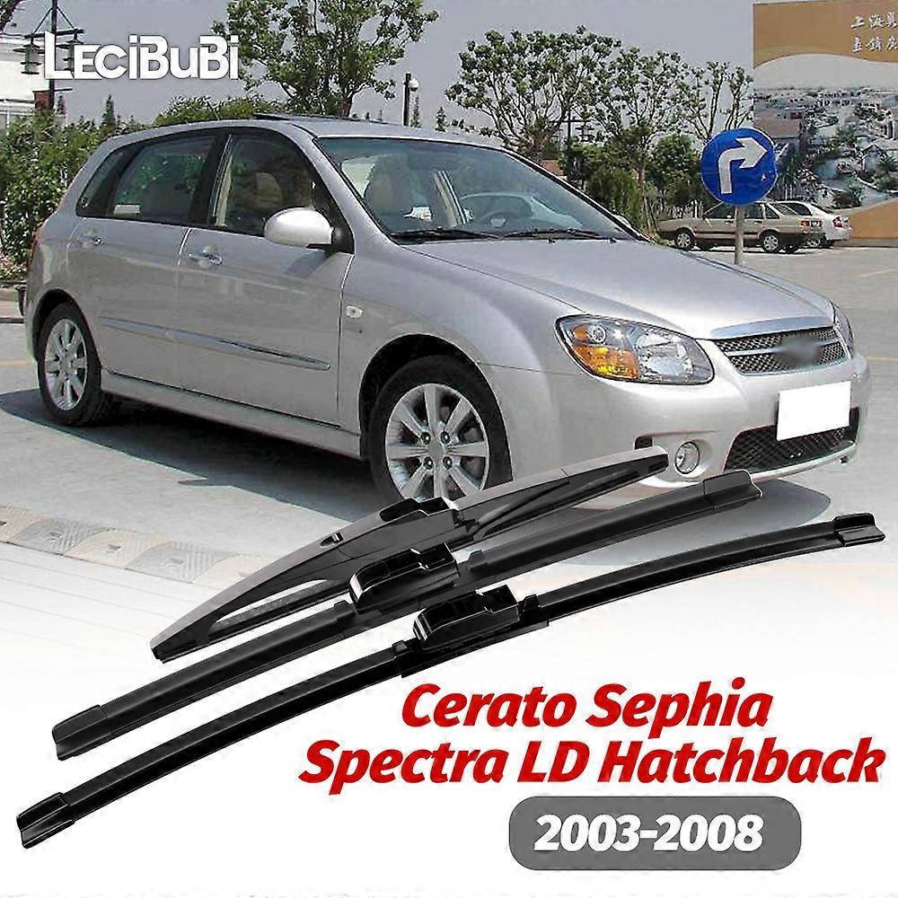 Specifications:High-concerned chemical:None:Placement:FRONT:Year:2000,2005,2006,2007,2008,2009,2010,2001,2002,2003,2004,2011,2012,2013,2018,2020,2019,2014Year,2015Year,2016Year,2017Year::Material:Rubber:Origin:Mainland China:Color:Black:Temperature Tolerance:+158℉ to -40℉ (-40℃ to +70℃):Package Include:1set Front & Rear windshield wiper blades:Work for::KIA Cerato Sephia Spectra LD Hatchback 2003-2008:Product feature::Color:Black:Size: matches the original car size and can be replaced directly. (note: only suitable for left-hand drive vehicles. Please confirm the model and year of the vehicle before placing an order):Material: high grade natural rubber:Temperature Tolerance: +158℉ to -40℉ (-40℃ to +70℃):Lifespan: 1 Million Times of Wiping:Tension memory applies even pressure along the entire blade lengt. Specially blended rubber delivers the ultimate smooth, clean, chatter-free wiper. Aerodynamic design significantly reduces drag, noise and wind lift. Intelligent boneless wiper,prevents ice and snow build-up from the exposure of metal/plastic components. Easy and quick installation, perfect fit, no need for awkward adapters, install in seconds.