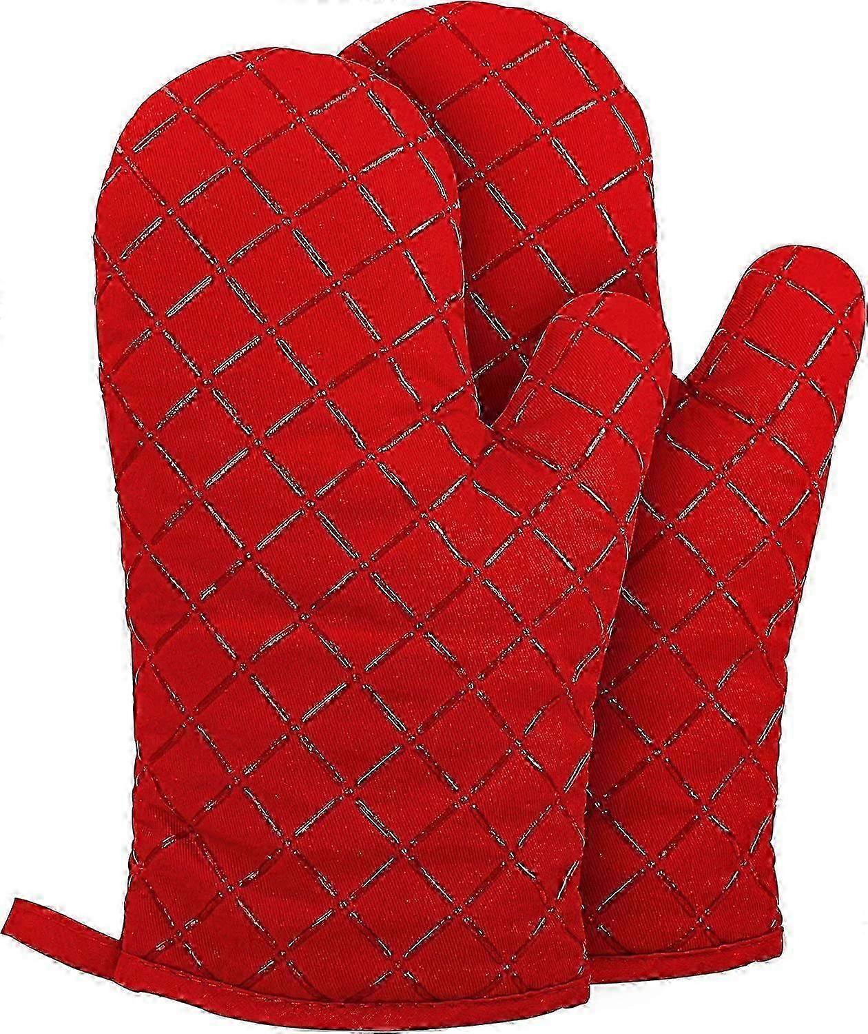 Red Silicone Kitchen Mitts with Non-Slip Grip for Oven and Grill Thermal Protection, 1 Pair