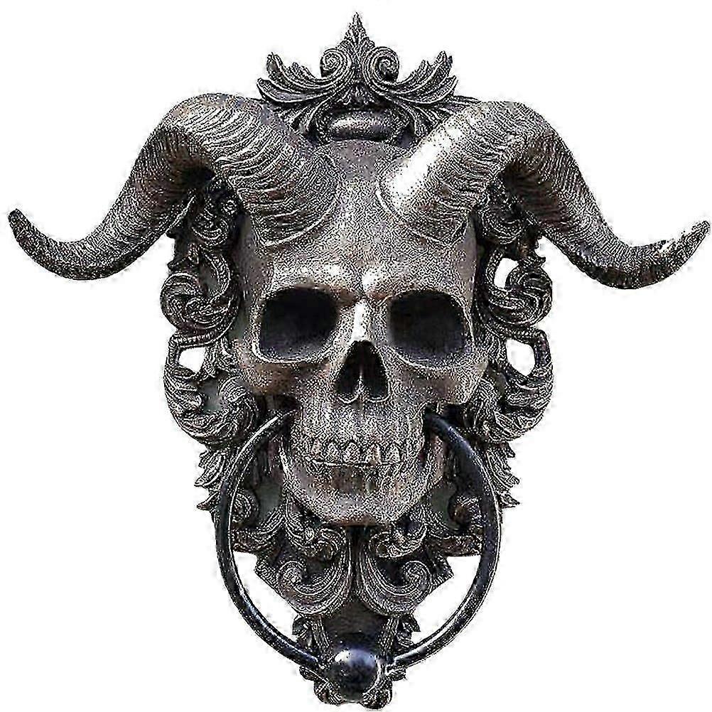 Gothic Horned Skeleton Door Knocker Wall Plaque for Halloween Outdoor Decor - Spooky Home Accent Piece