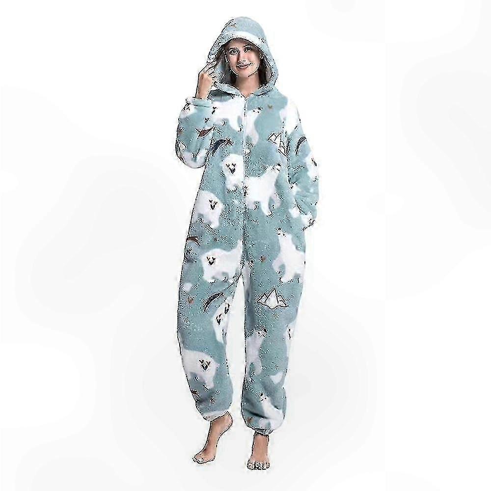 Women's Animal Print Hooded Onesie Pajama Jumpsuit Loungewear Sleepwear