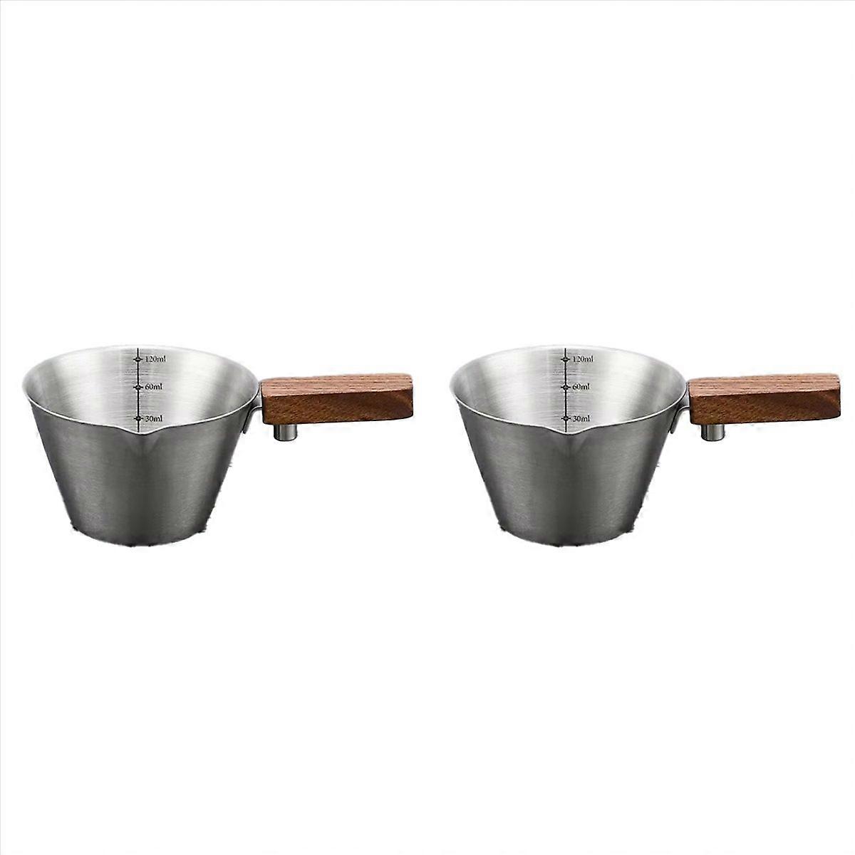 120ML Espresso Measuring Cup with Scale,Stainless Steel Coffee Pouring Cup,Wood Handle,Tool for Coff