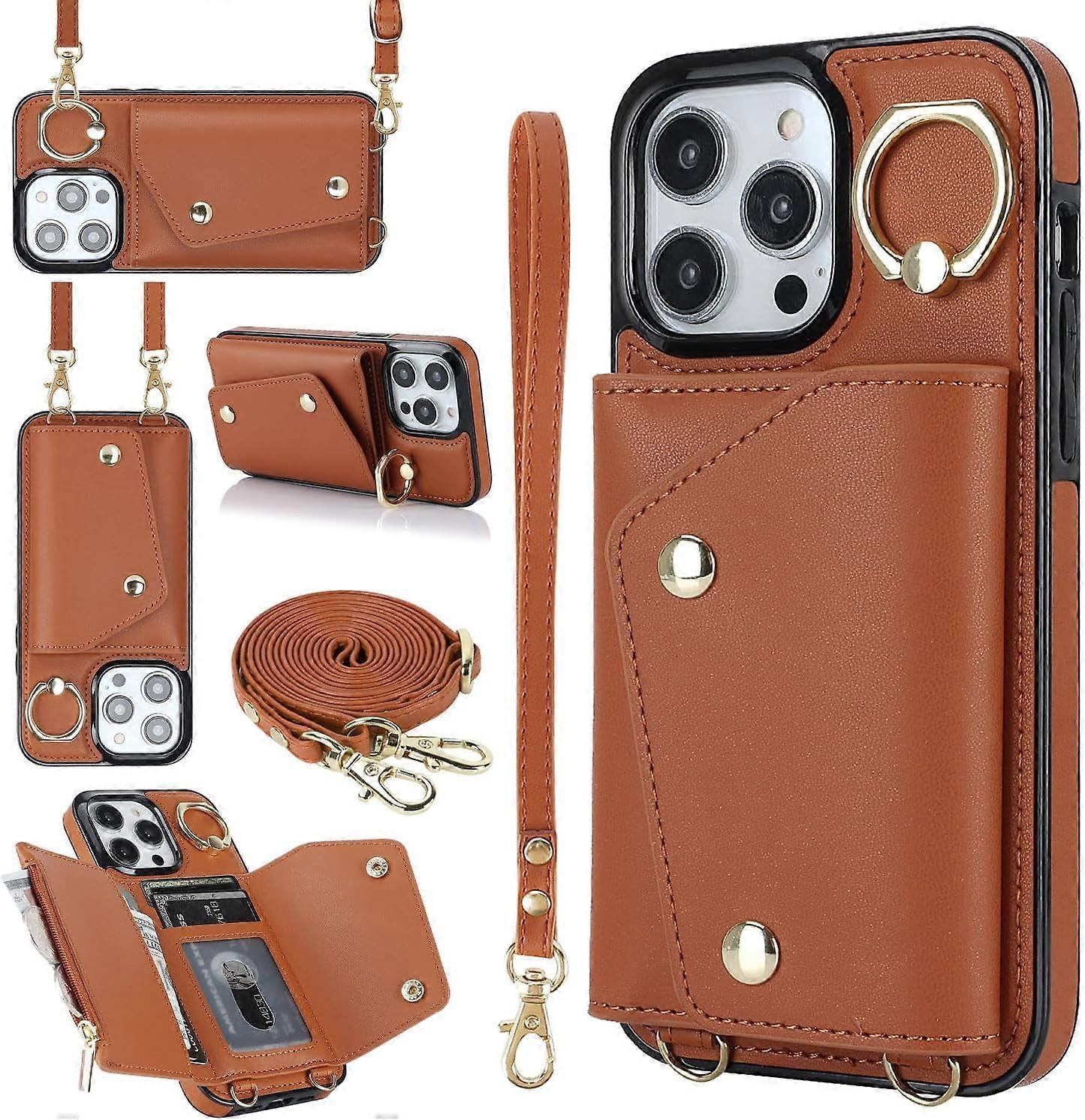 Phone Case Compatible with iPhone 15 Pro, Wallet Case with Card Holder, Crossbody Strap, Kickstand, PU Leather Flip Case for Women