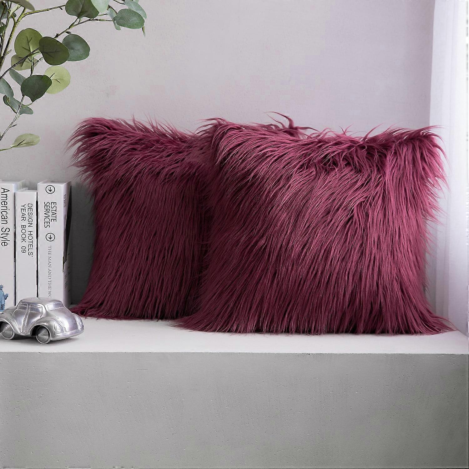 Holiday Deal Selection Phantoscope Plush Faux Fur Decorative Throw Pillow Cover for Bed and Couch, 18" x 18", Purple Red, 2 Pack
