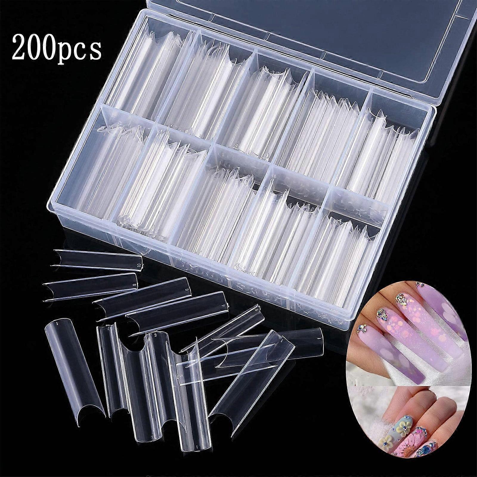 Bemona 200PCS Extra Long False Nail Tips Acrylic Gel Salon Half Cover Tip Nail Tools,Clear
