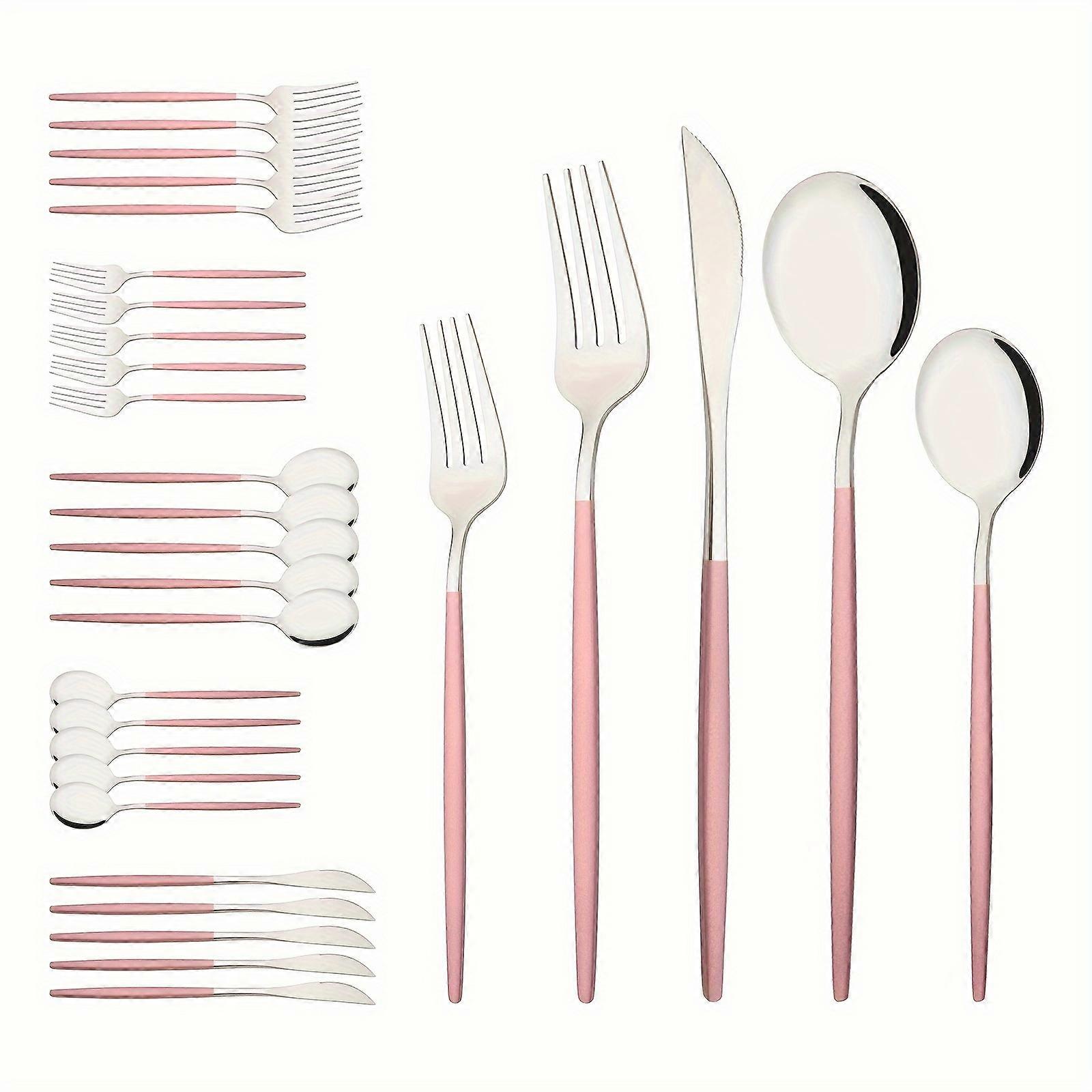 30-Piece Pink Stainless Steel Flatware Set - Durable Color Handle Cutlery, Forks, Spoons, Knives, Mirror Polished, Dishwasher Safe, Rust-Resistant