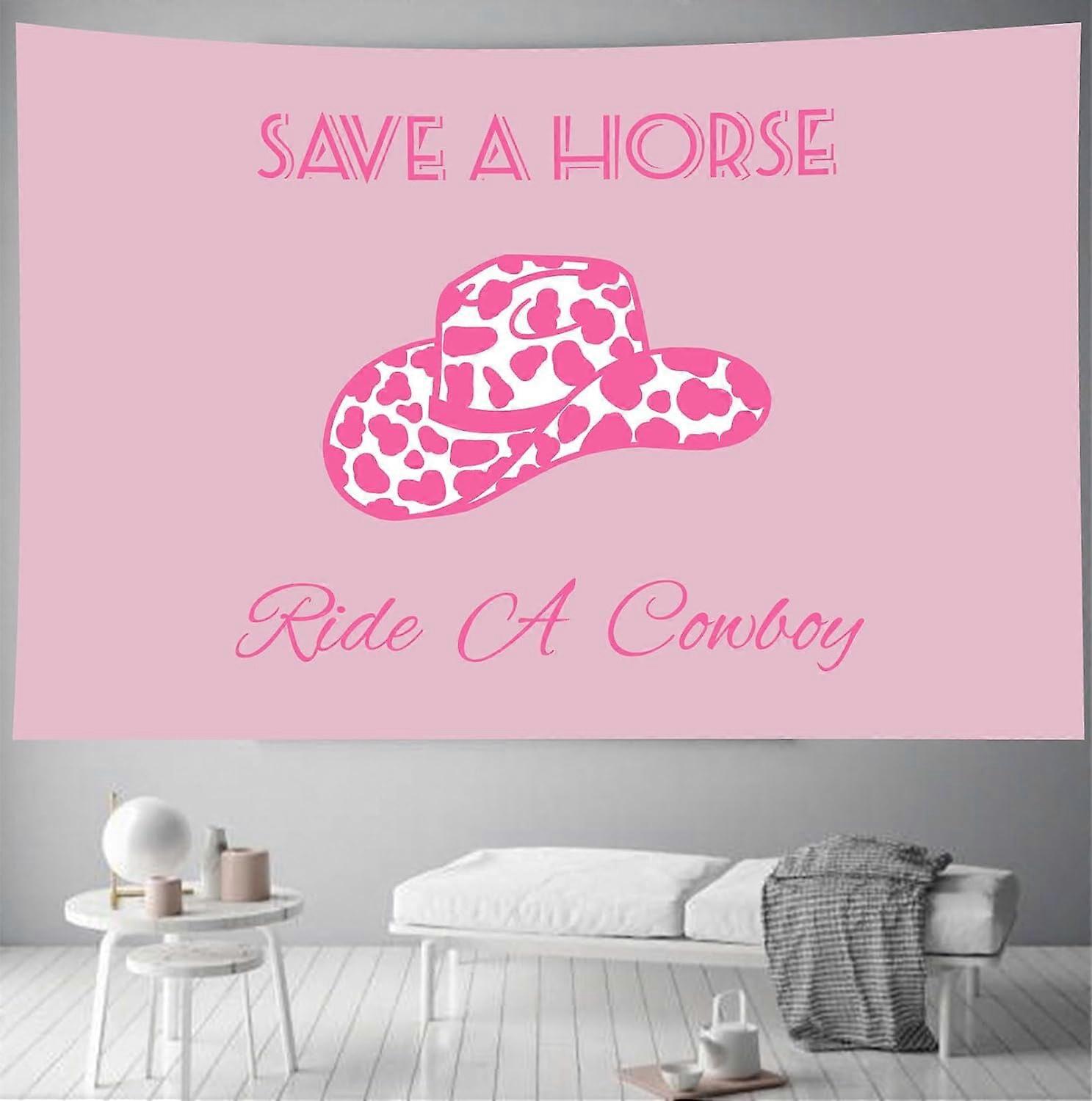 Save A Horse Ride A Cowboy Tapestry, Pink Western Cowgirl Hat Wall Hanging for Bedroom, Dorm, Living Room Decor