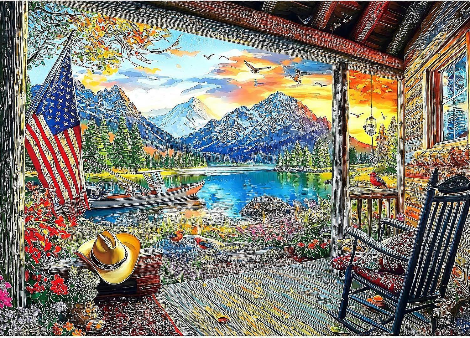 Lake Vil Jigsaw Puzzle for Adults Sunset Nature Scene Colorful Landscape Puzzle Challenging Family Puzzle Perfect for Game Nights JP-708