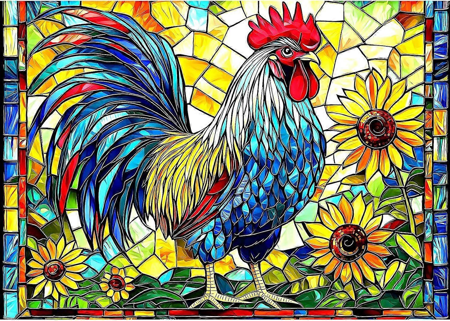 Stained Glass Rooster Puzzles for Adultss Colorful Rooster Puzzle for Adults Mosaic Jigsaw Puzzles with Letters on Back Hard Impossible Difficult Chal