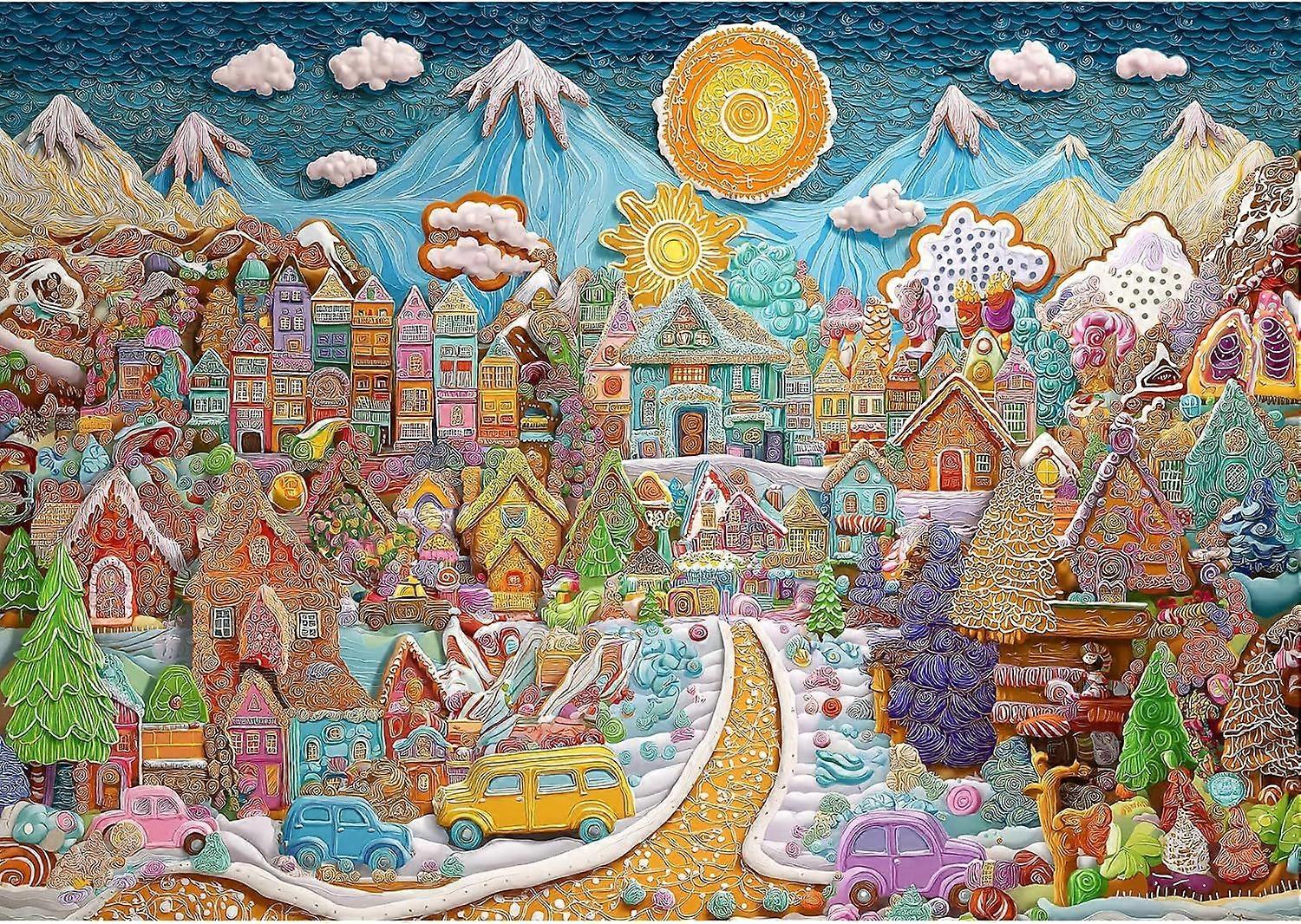 Christmas Puzzles for Adults Art Gingerbread Vil Jigsaw Puzzles Adults and Teens Family Challenging Puzzle Perfect for Game Nights JP-994