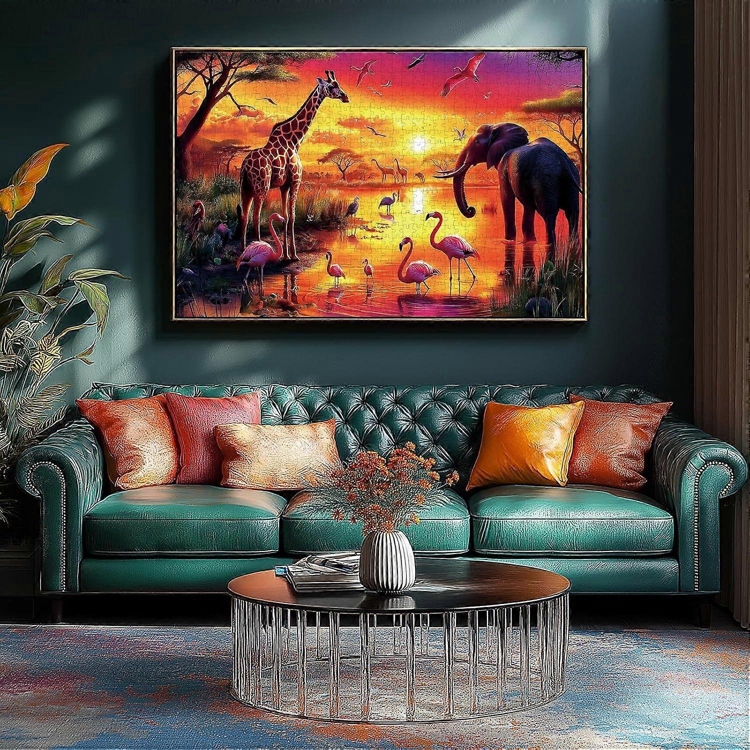 Animal Jigsaw Puzzles for Adults Nature Wildlife Scene with Elephants Lion Tiger Giraffes Flamingos Puzzle Family Challenging Funny Puzzle Perfect for