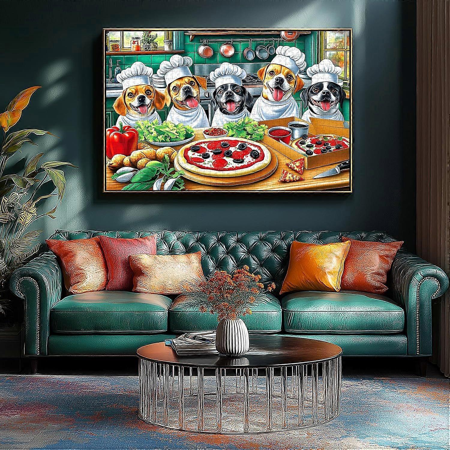 Puzzles for Adults Dog Chef's Dinner Party Jigsaw Puzzles Pizza Theme with Letters on Back for Family Decoration, Gifts, Party Game JP-1028