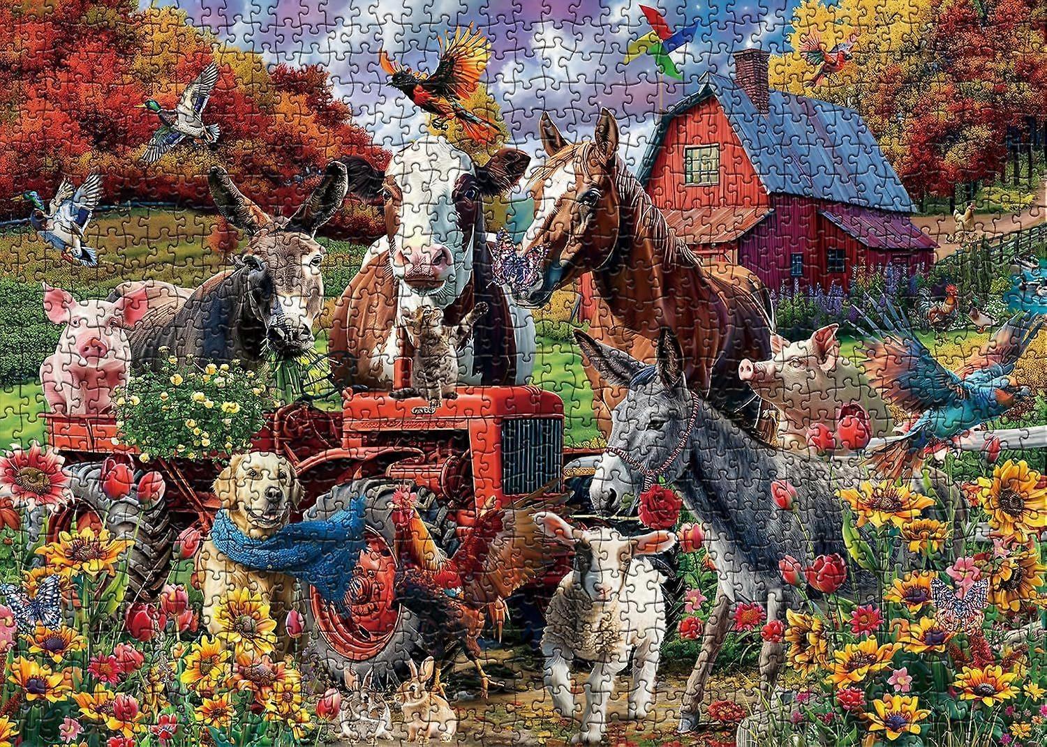 Magic Fall Farm Animal Puzzles for Adultss Nature, Fantasy Autumn Landscape Art Jigsaw Puzzles, Funny Puppy Bird Cat Cow Puzzle JP-423