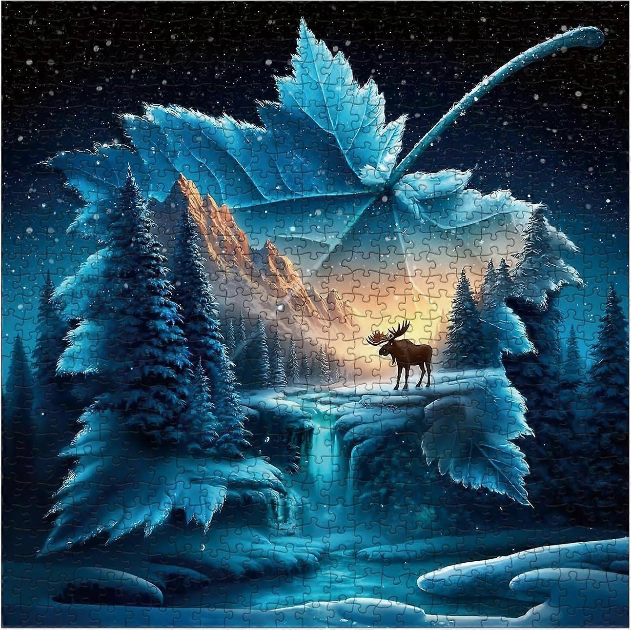 Magic Winter Wonderland Puzzles for Adults Nature Leaf Landscape Reindeer Art Jigsaw Puzzles, Pretty Scenic Forest Impossible Hard Difficult Challengi