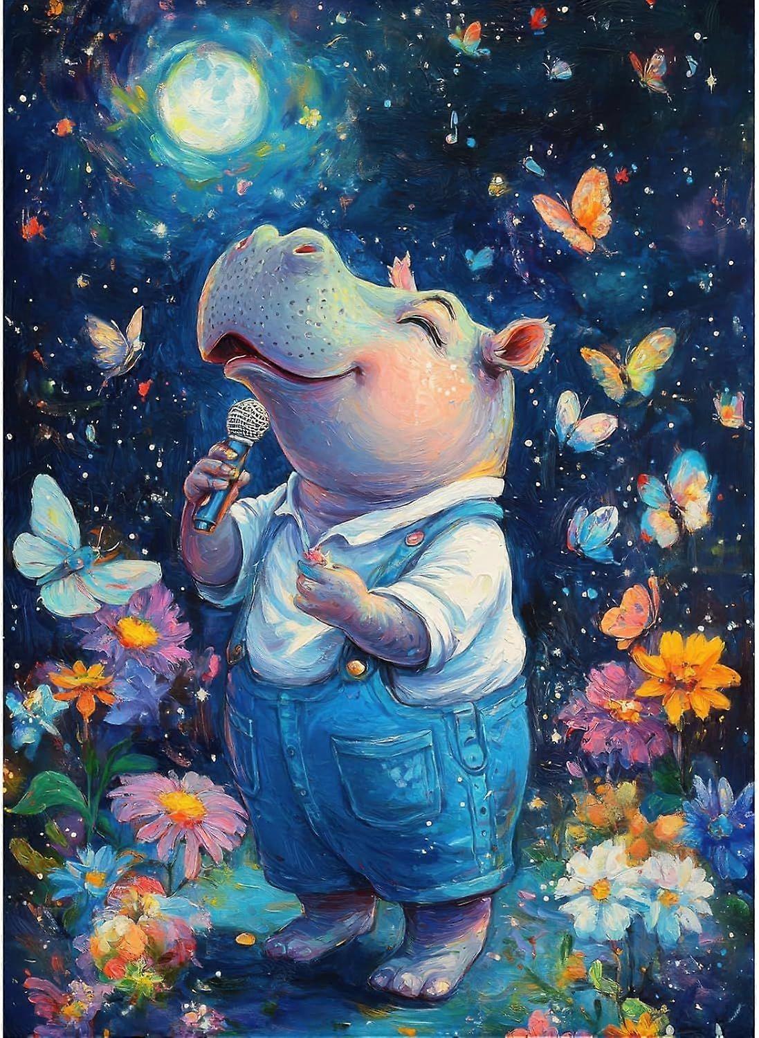 Hippopotamus Singing Jigsaw Puzzles, Puzzles for Adults Perfect Interlock, Transforming Your Home into an Art Haven JP-536