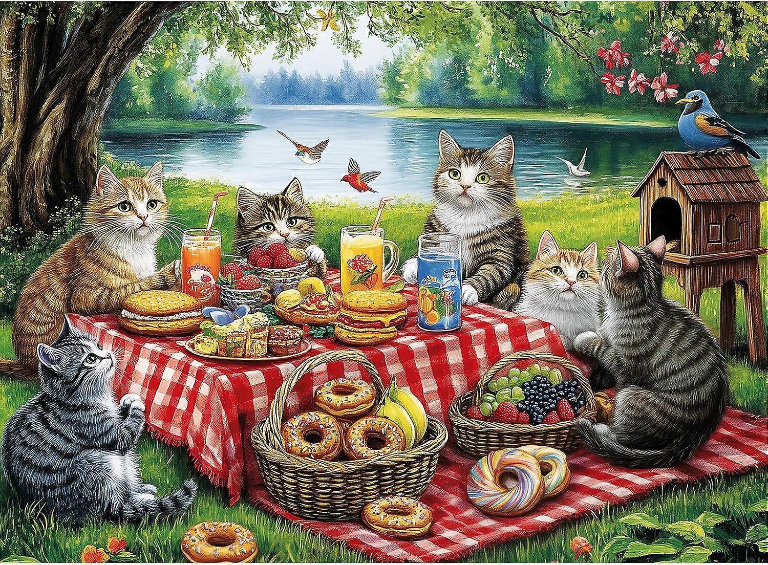 Puzzles for Adults, Cat Family Dinner Large Piece Jigsaw Puzzle for Adults Kids Seniors,Puzzle Family Activity Great Gift for Family Friends JP-606