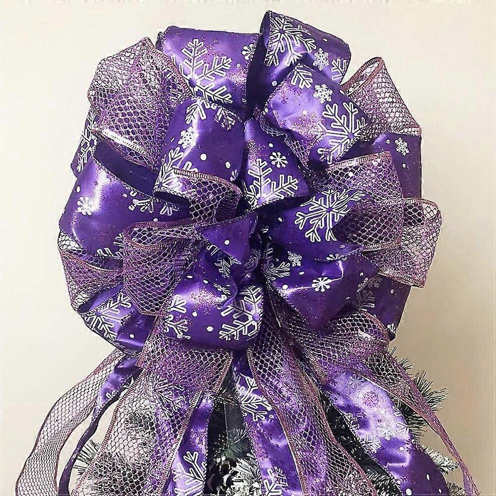 Christmas Tree Topper 13x34 Inches Large Bow with Streamer Wired Edge for Xmas Tree Decoration (Rose Gold)