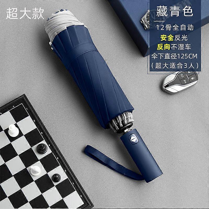 Automatic Black Coated Umbrella Sun Rain Dual Use Reverse Fold Dry Car Thick Black Coated Umbrella