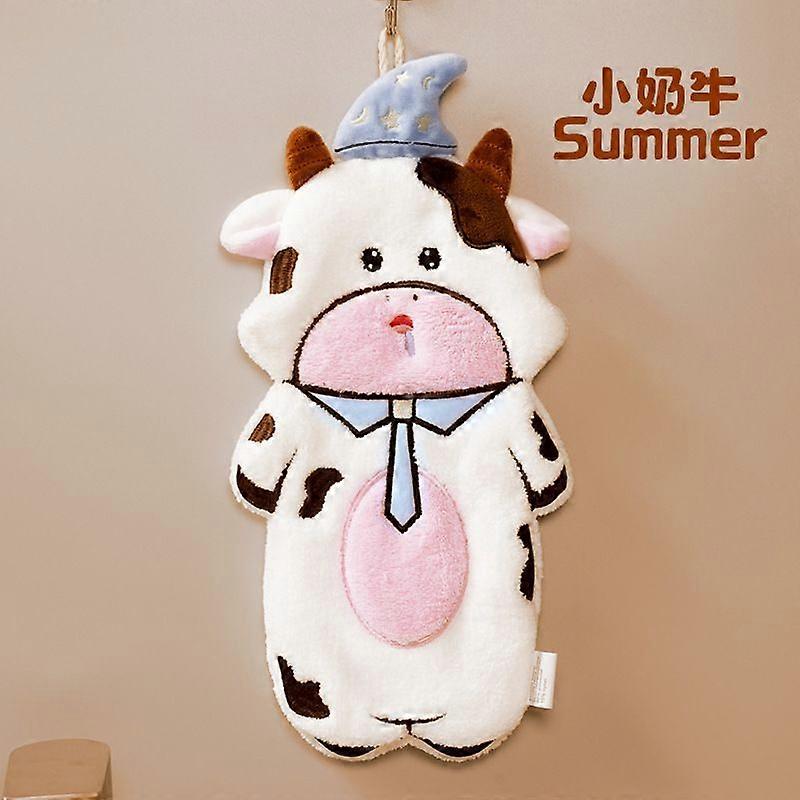 Cartoon Hanging Hand Towel Coral Fleece Quick Dry Absorbent Hand Towel Kids Towel Gift Panda Cow Pig Seal