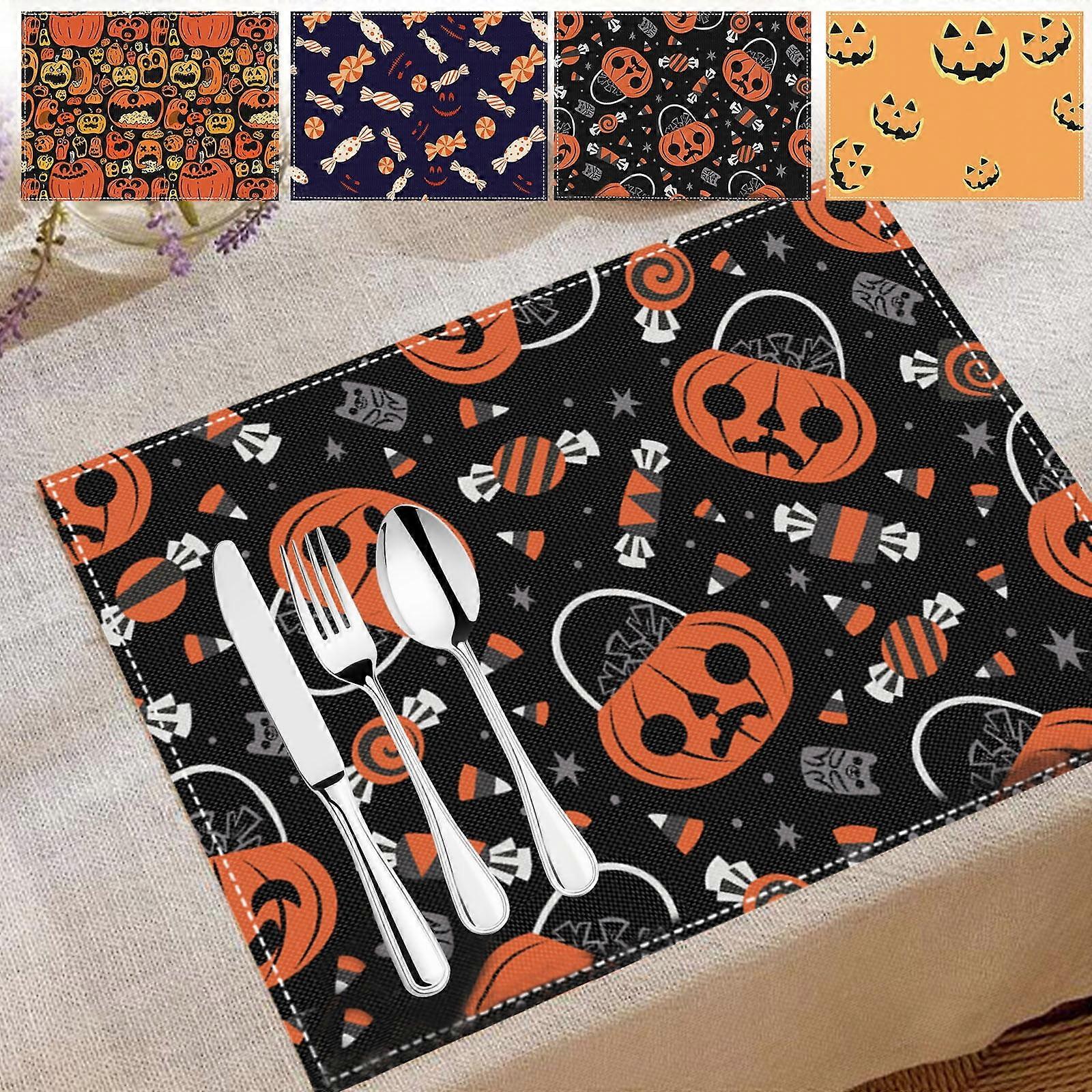 Jacenvly Halloween Table Mats, Compatible with Candy Festival, Cute Pumpkin Print, Insulation Mats for Kids, Restaurant & Living Room Decor