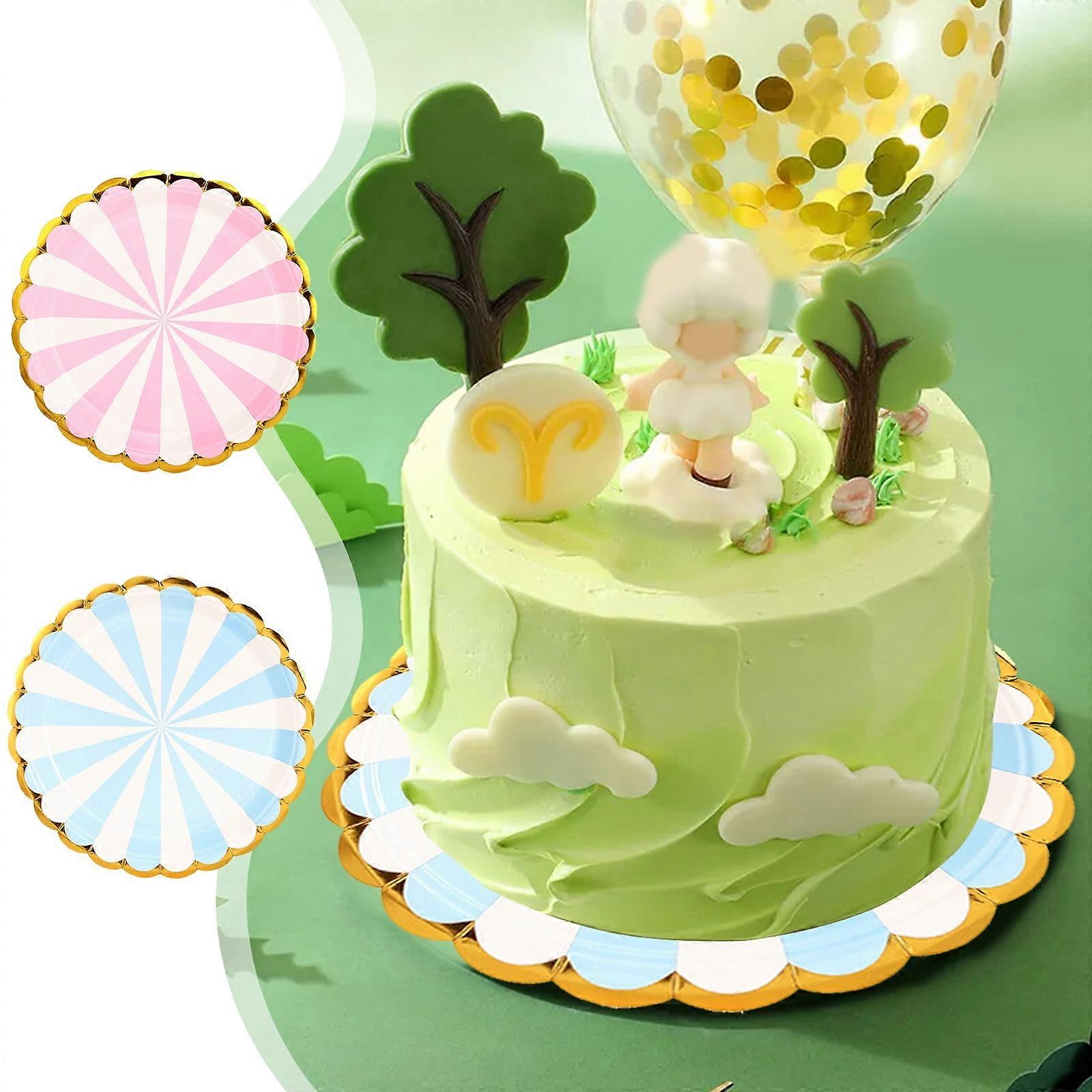 Jacenvly Christmas & Birthday Party Decorations, Gold Stamped Striped Watermelon Paper Plates, Compatible with Indoor Table Decoration Supplies