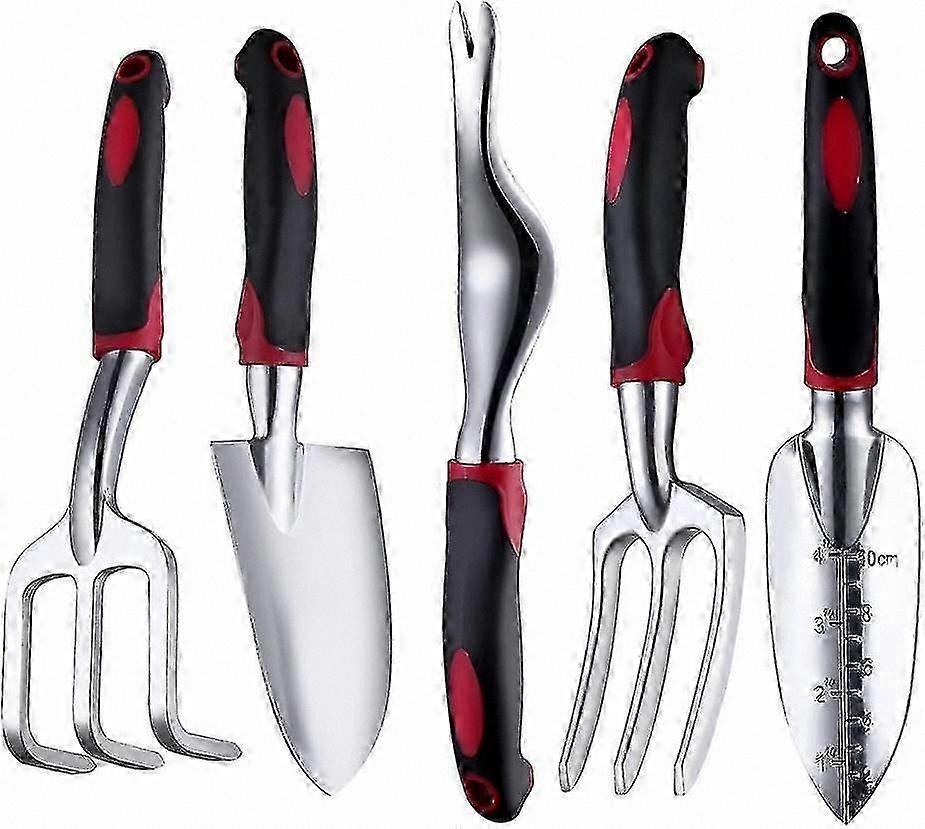 Heavy Duty Gardening Tool Set, 5-Piece Aluminum Non-Slip Grip for Men & Women, Black/Red