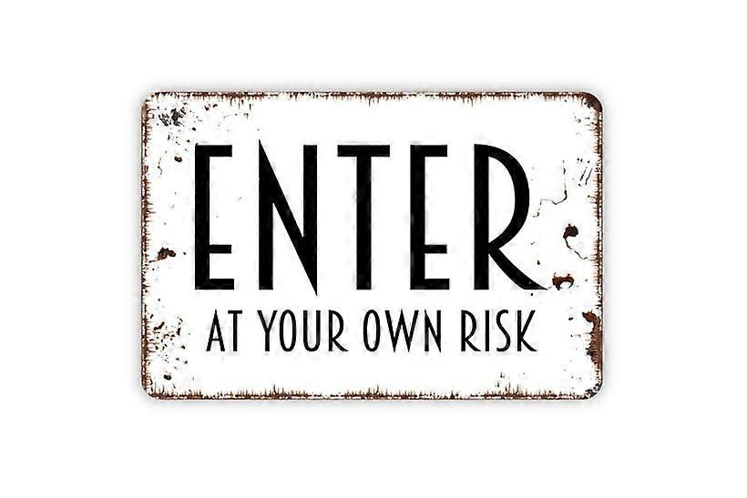(Aluminum metal) Enter At Your Own Risk Sign Metal Sign Farmhouse Contemporary Modern Wall Metal Sign Size: 8 x 12 Inch