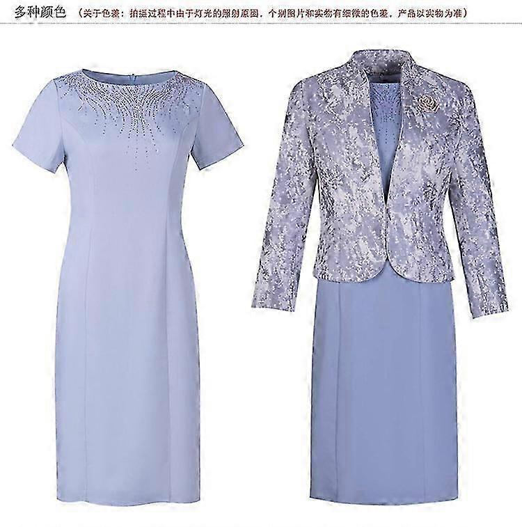 JWL-Royal Blue Two Piece Mother of the Bride Dress Jacket Pearl Sattin Knee Length Formal Bead Embroidery Wedding Officer Casual Gown!ZZ37