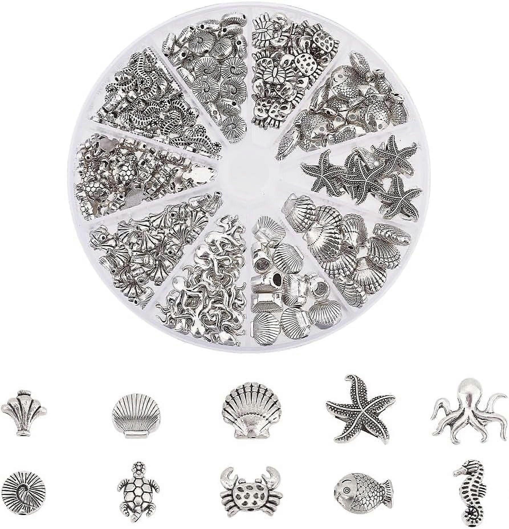 171Pcs Ocean Style Beads 10 Styles Antique Silver Sea Creatures Charms Small Fish Shell Alloy Loose Beads Assorted Animal Pendants for Jewelry Making
