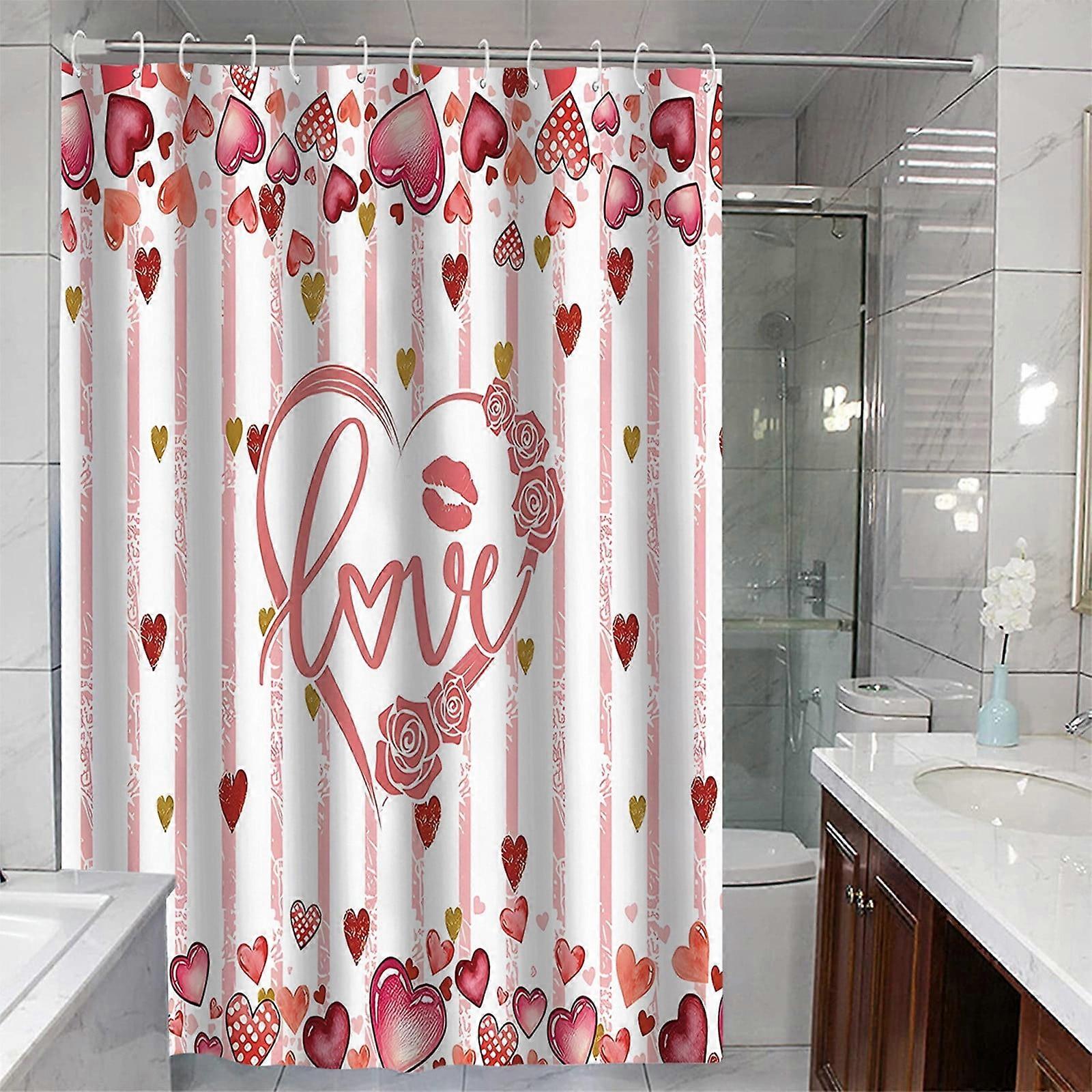 Amacok Valentine's Day Romantic Bathroom Shower Curtain 71X71Inch Pink Red Heart Accessory Polyester Fabric with Plastic Hooks Waterproof Bath Decor