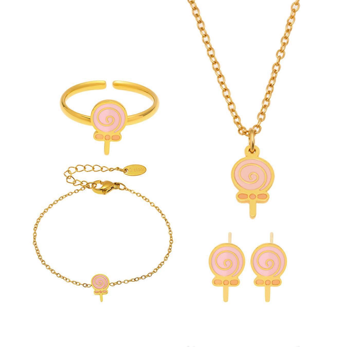 Children's Jewelry Set, Cute Playful Lollipop Oil Dripping Glitter Necklace Bracelet Ring Earrings for Kids