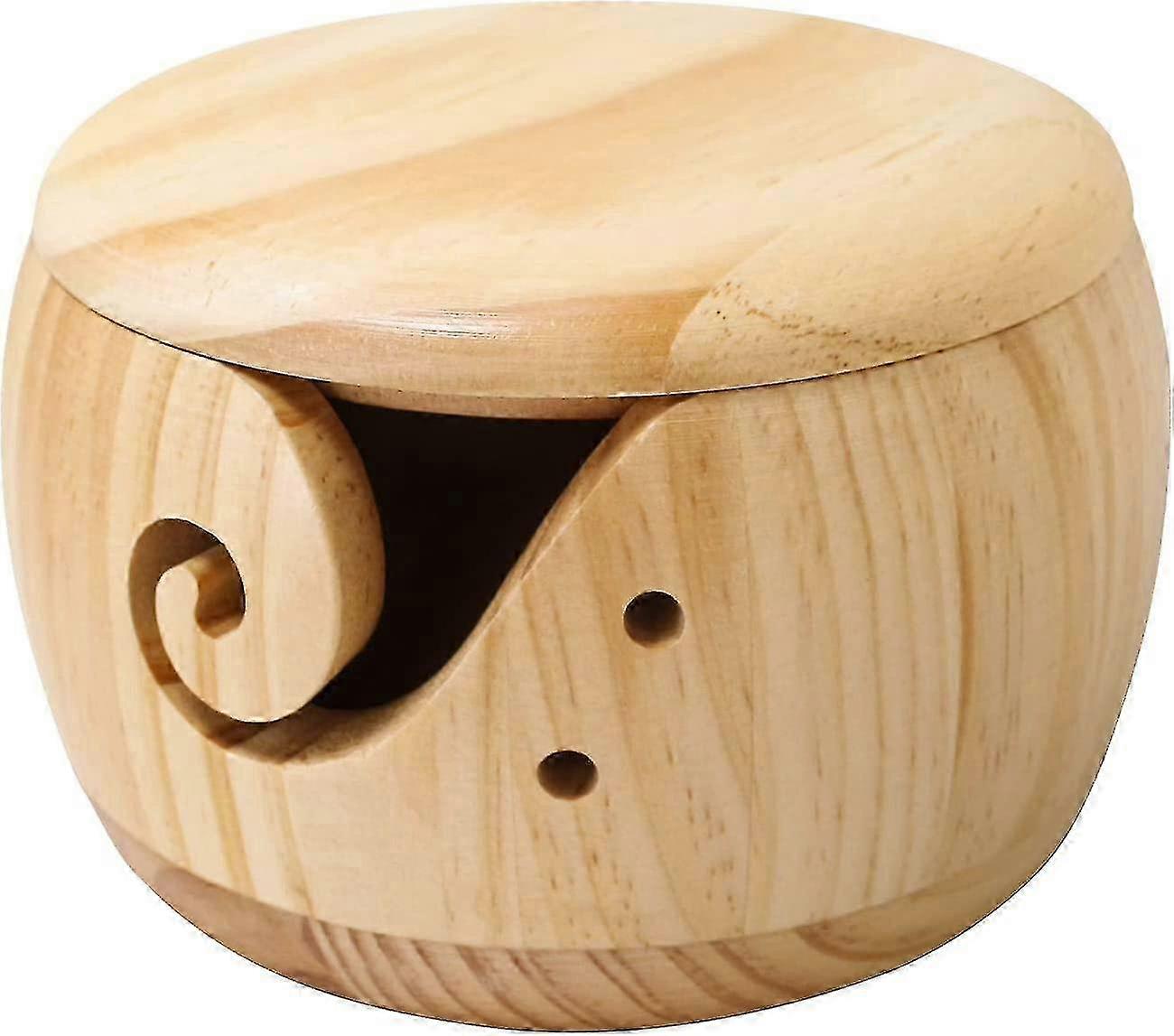 Wooden Yarn Bowl with Lid Yarn Bowl Wool Holder Handmade Yarn Storage Bowl with Holes for Knitting Crocheting