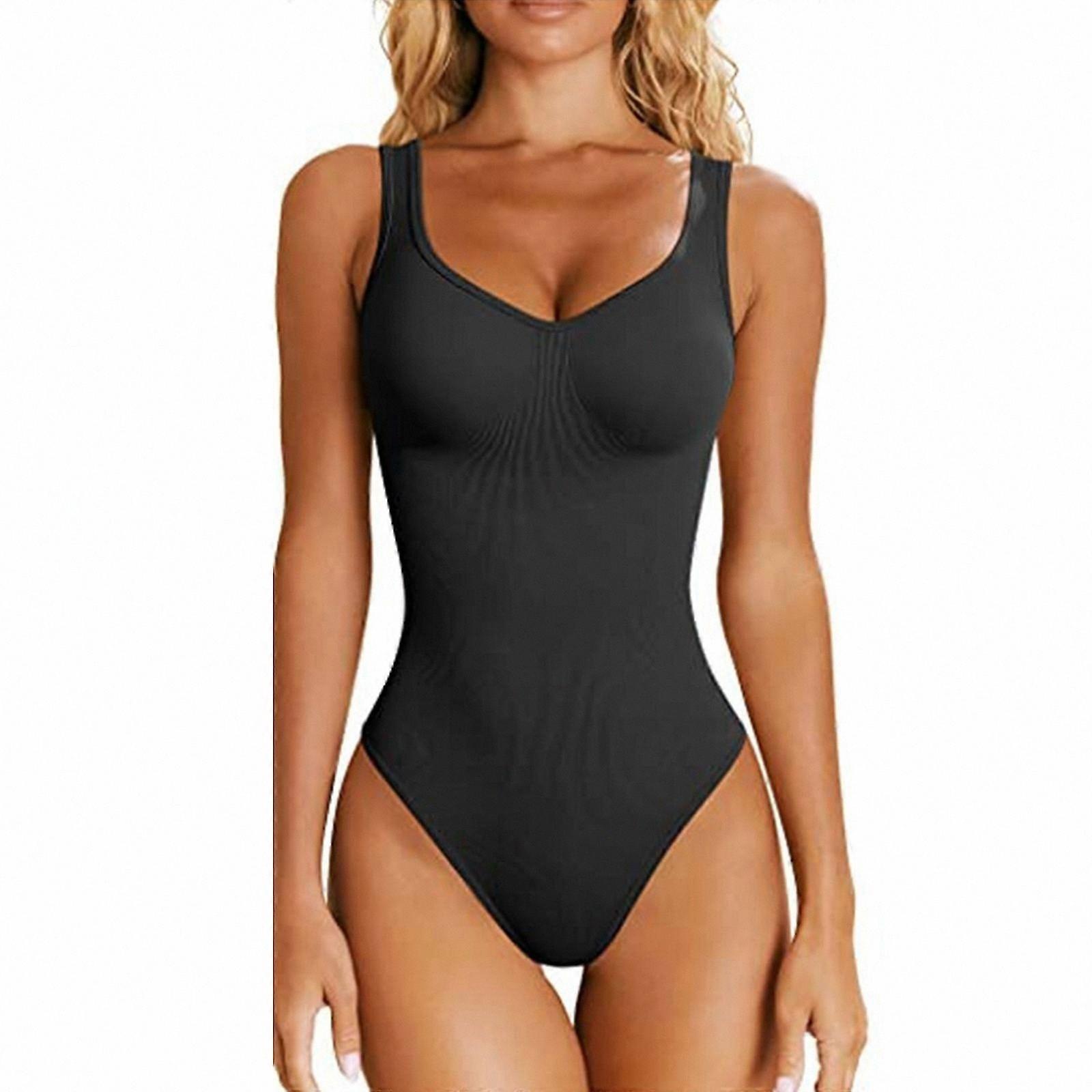 Women's Sleeveless V-Neck Ribbed Knit Bodysuit in Smoke Gray Slim Fit Basic Solid Color Tank Top Romper Size L