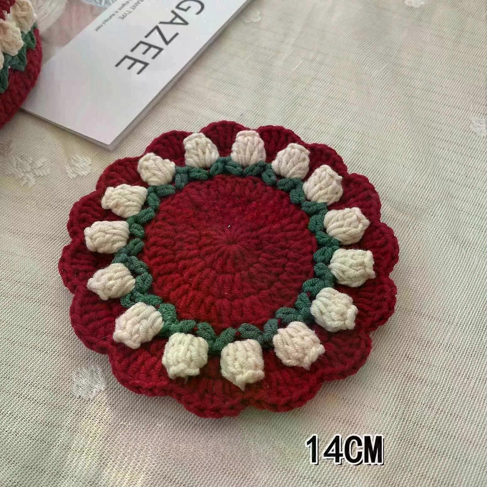 1PCS Knitted Coaster Red Handmade High Temperature and Anti Slip Cup Mat Absorbent Pad Table Protector Kitchen Dishes Decoration