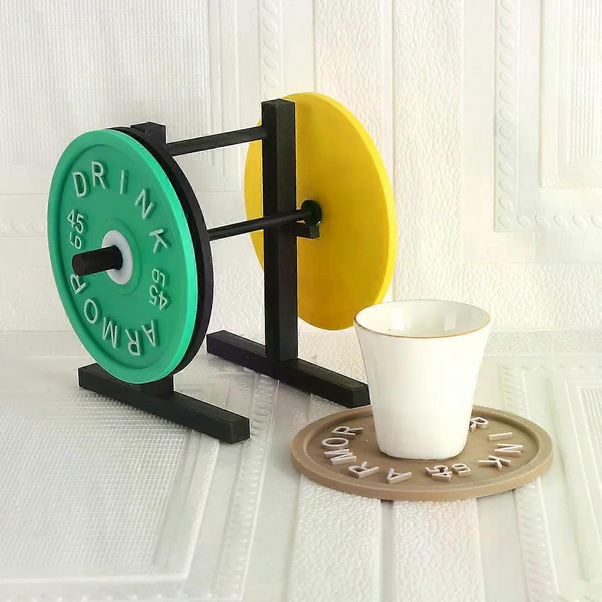 Creative Barbell - Shaped Coaster Rack Set | Fitness - style Desktop Storage Mini Stand with Colorful Barbell Plate Coasters Plastic products are not heat-resistant. Please use them with caution!!! _x000D_ _x000D_