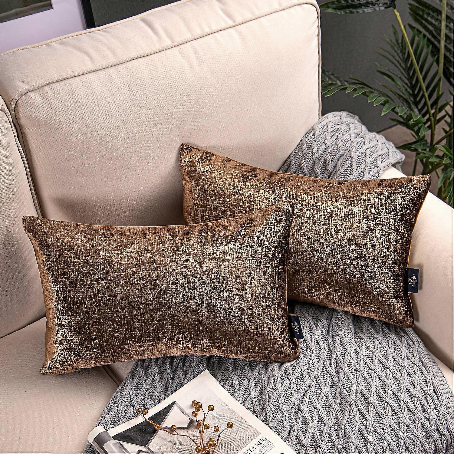 Phantoscope Bronzing Gold Foil Printed Cut Pile Velvet with Gilding Metallic Shiny Decorative Throw Pillow, 12" x 20", Coffee Gold, 2 Pack