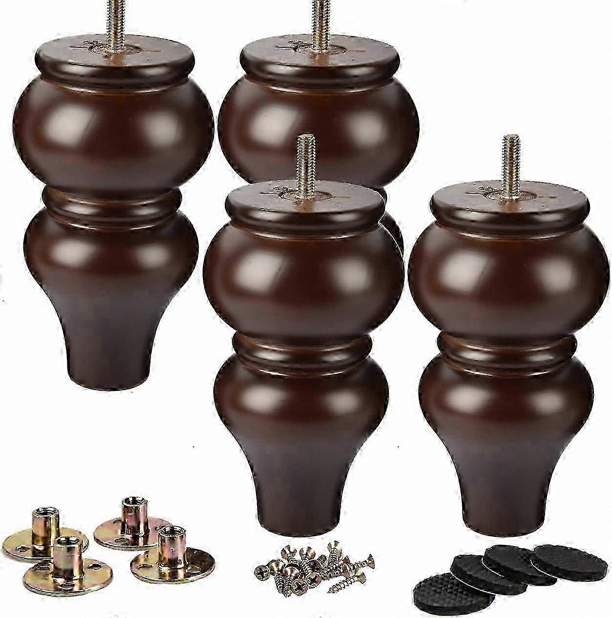6 Inch Wooden Furniture Legs, 4pcs Black Solid Wood Spindle Bun Feet with Pre-drilled M8 Bolt Mounting Plate