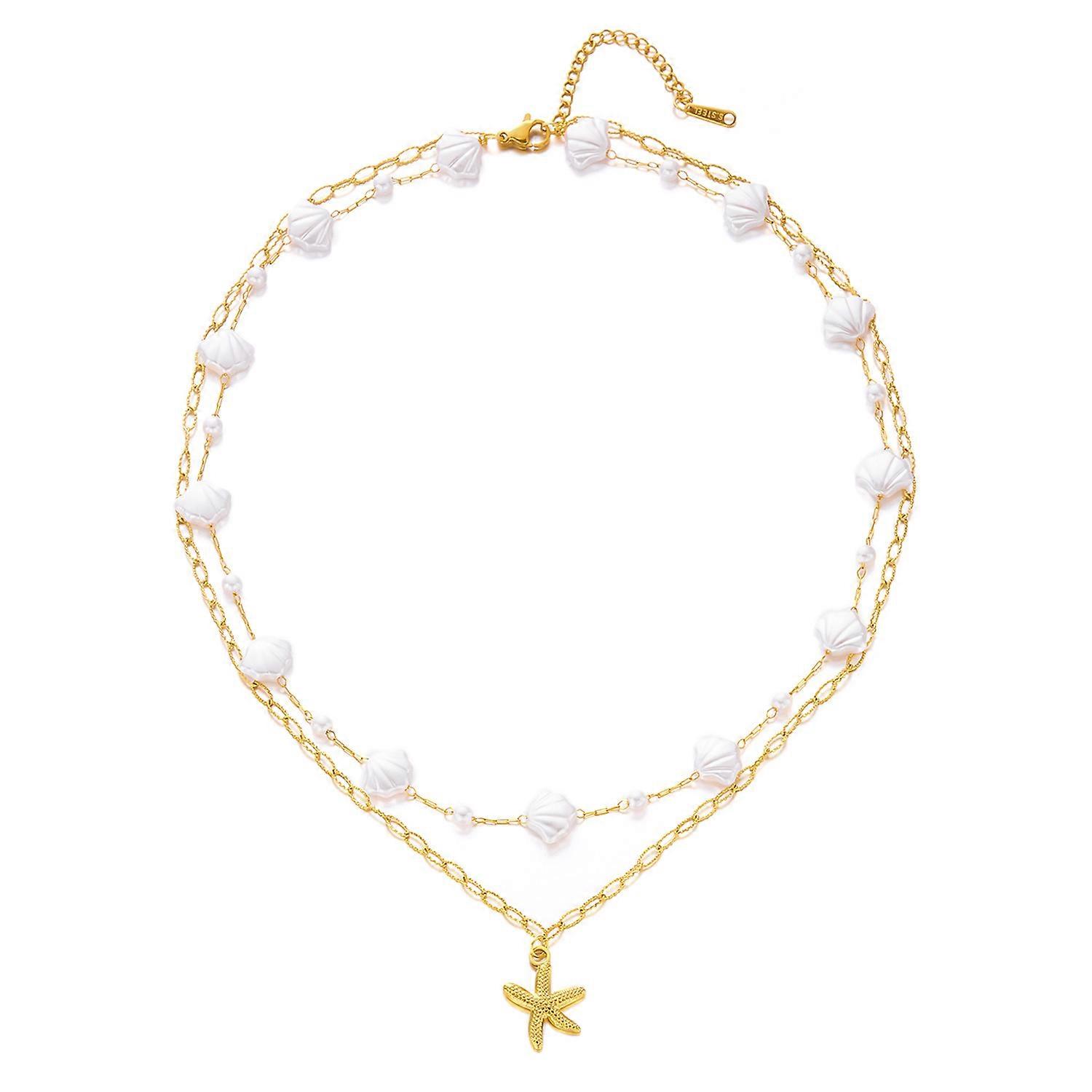 Necklace and Bracelet, Stainless Steel Starfish Pearl Shell Beach Vacation Style Women's Jewelry