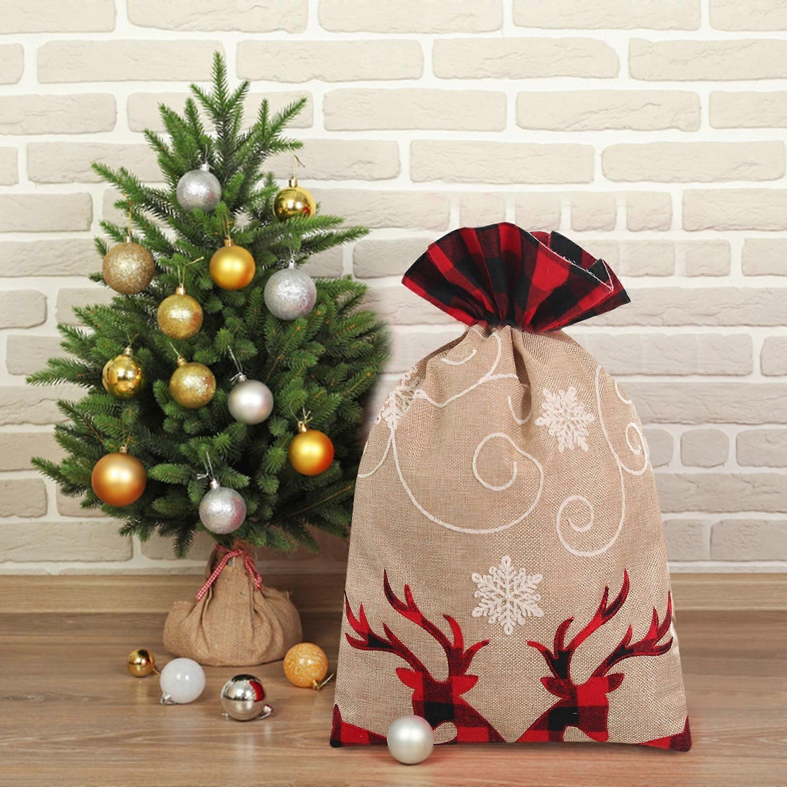 Large Christmas Bags with Drawstring Bottoms Christmas Bags for Gift Wrapping Reusable Christmas Bags for Gifts Vintage Plaid Christmas Candy Bags