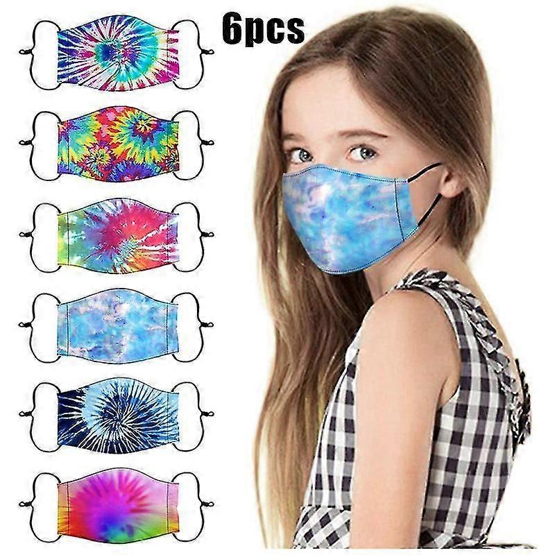 Luxora 6pcs Kids Children Face Mask Tie Dye Printed Face Masks Washable Reusable Face Cotton Cloth Mask